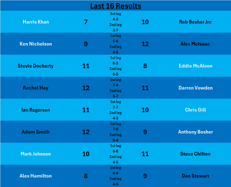 During the week attention turned to the 2nd legs in the last 16 of our Bezza Europe competition. Alex McIsaac, Rachel Hay and Adam Smith were top scorers with a combined score of 12 points over the 2 legs as they advance to the quarter finals. Current champion Steve Chilton also makes it through after a close tie with rival Mark Johnson. Rob Bosher Jnr, Ian Rogerson and Dan Stewart make it through to the quarters with wins over Harris Khan, Darren Vowden and Alex Hamilton respectively. As well as champion Steve Chilton, the only other player to have been at this stage last season was Stevie Docherty. Docherty takes the last spot in the last 8 which takes place in March.