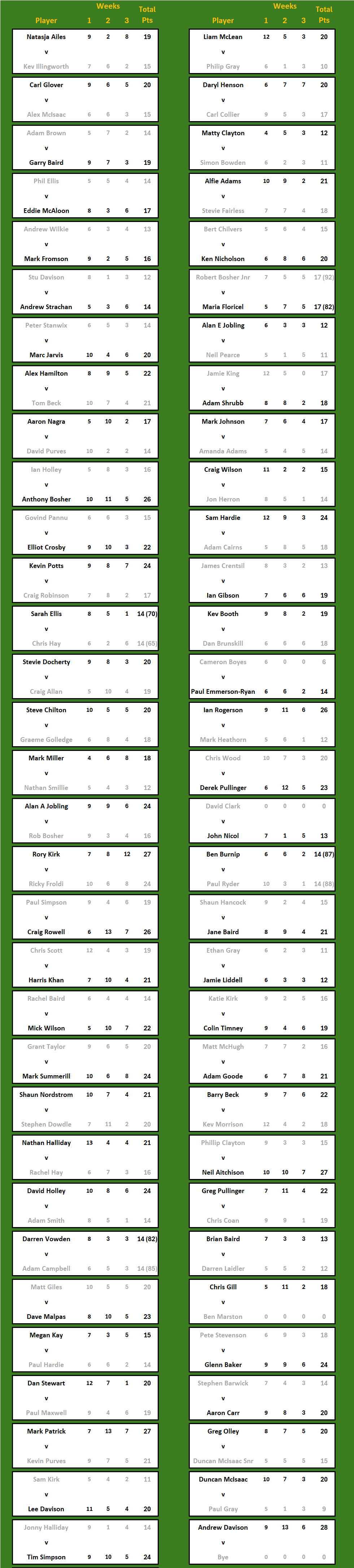You will be automatically entered into the 1st round group stage. A draw will be made to see who you play in a head-to-head format. The 1st round will be played over 3 weeks (week 4, 5 & 6), the person with the highest combined total over those 3 weeks will progress to round 2.